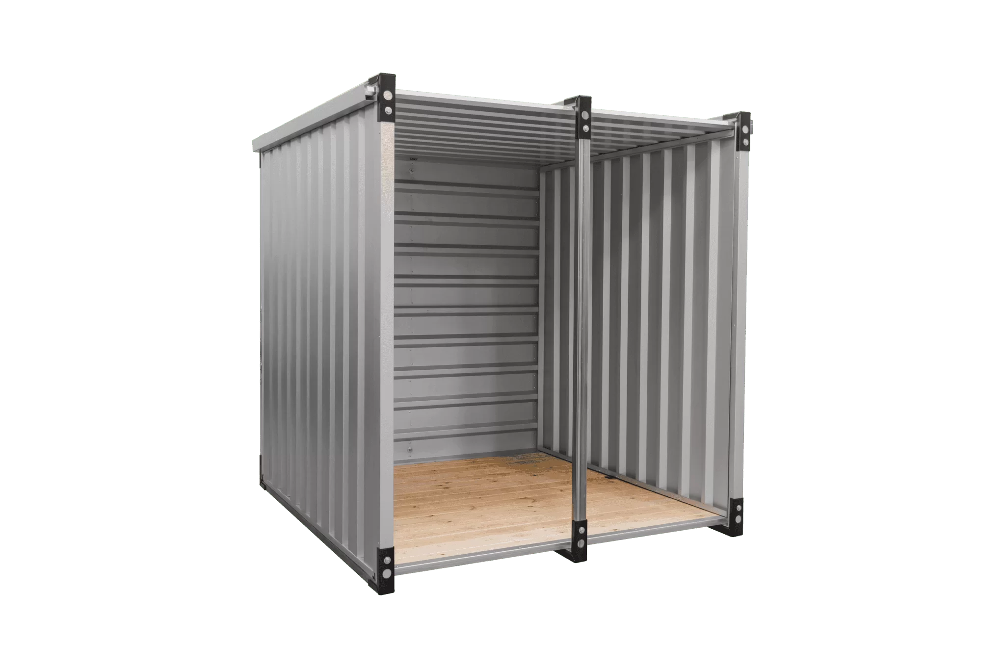 Die hochwertigen Lagercontainer überzeugen mit einer klappbaren Bauweise, die flexibel an Ihre Bedürfnisse angepasst werden kann. Technisch beeindrucken sie durch einen massiven Boden aus 32 mm starken Planken, gestützt auf verzinkten 60×40-Profilen (2 mm Stärke). Die Stabilität der Container wird durch eine robuste Wand sowie eine starke Mittelstrebe und ein Dach aus 0,75 mm dickem T-35-Aluzink-Trapezblech gewährleistet, das sicher mit den Profilen vernietet ist.